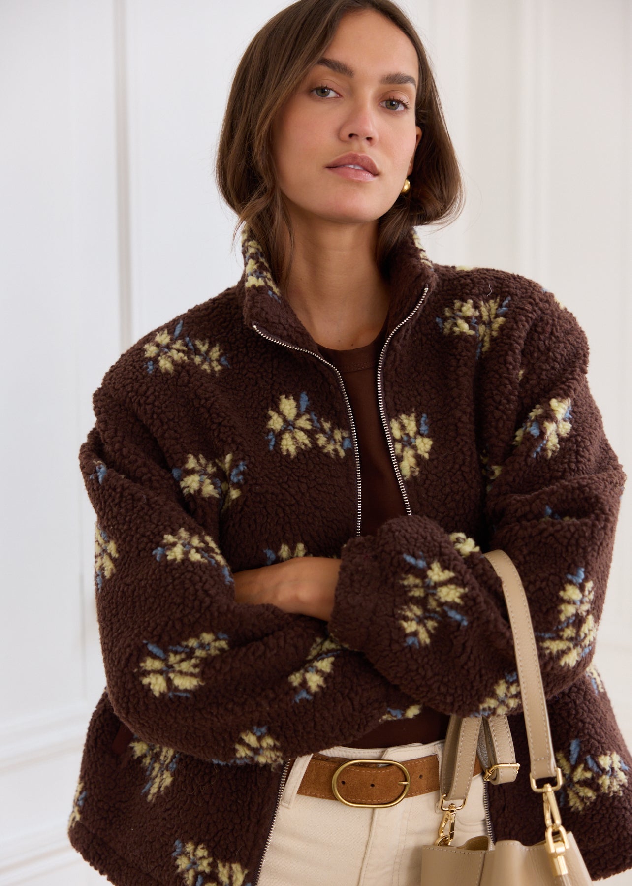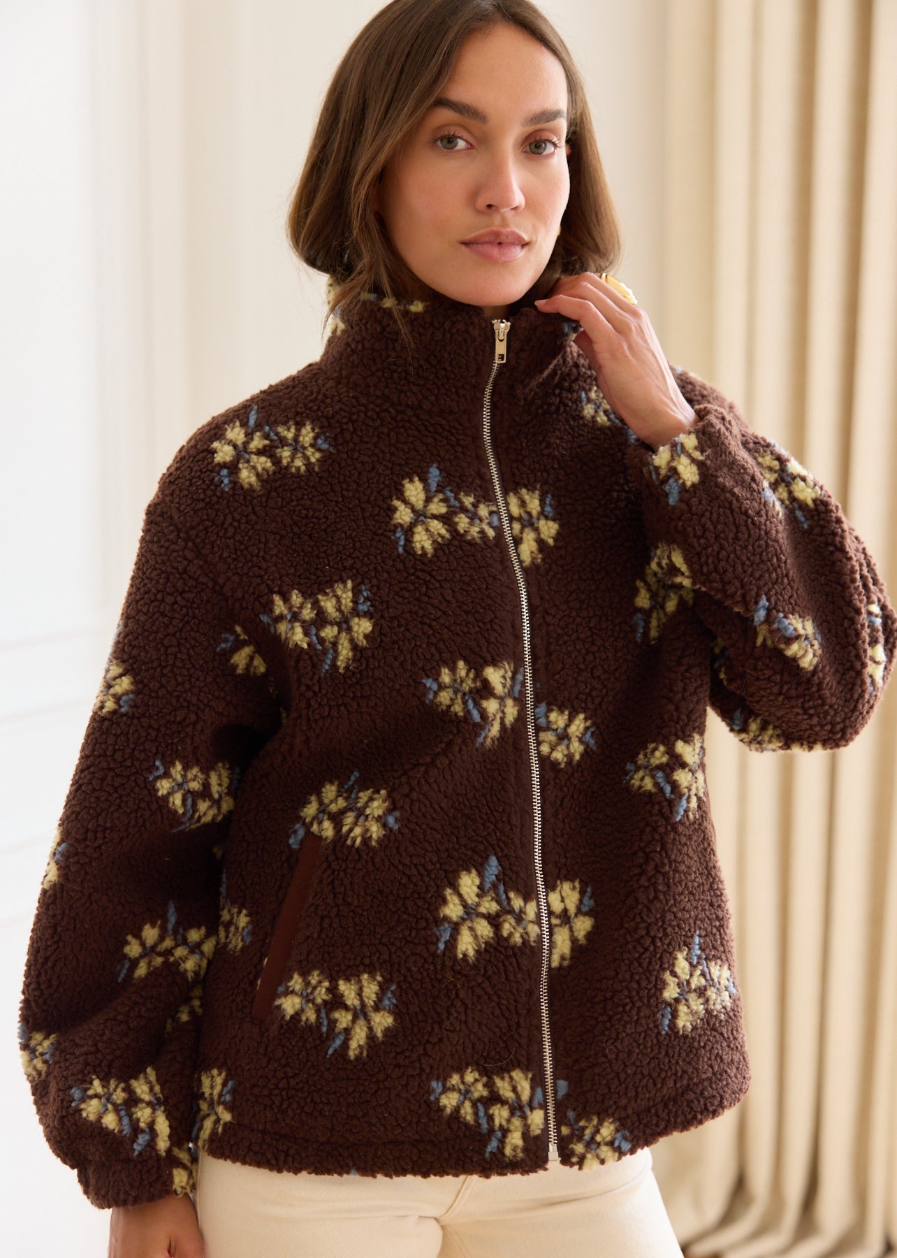- Veste effet mouton, imprimé fleuri