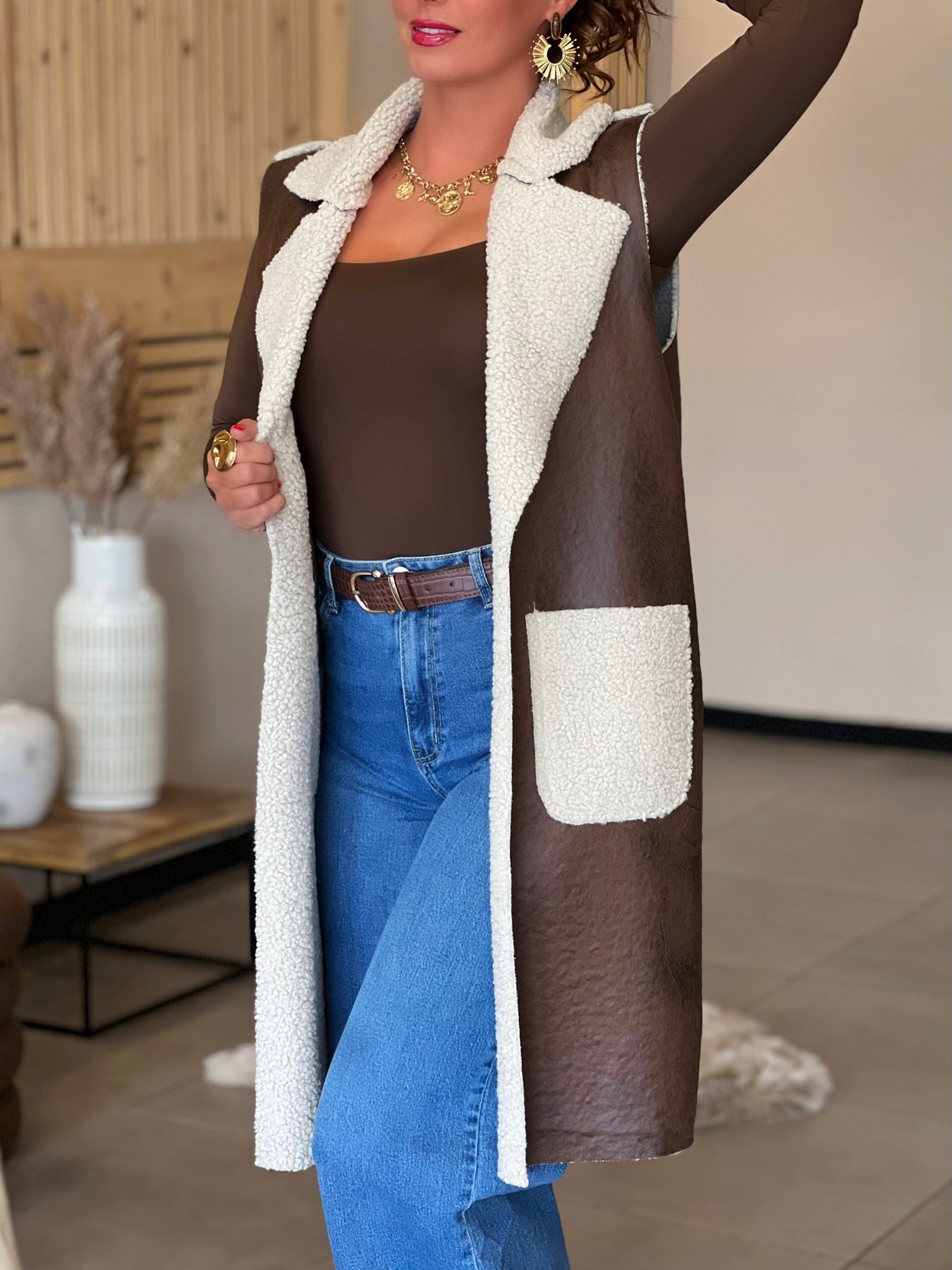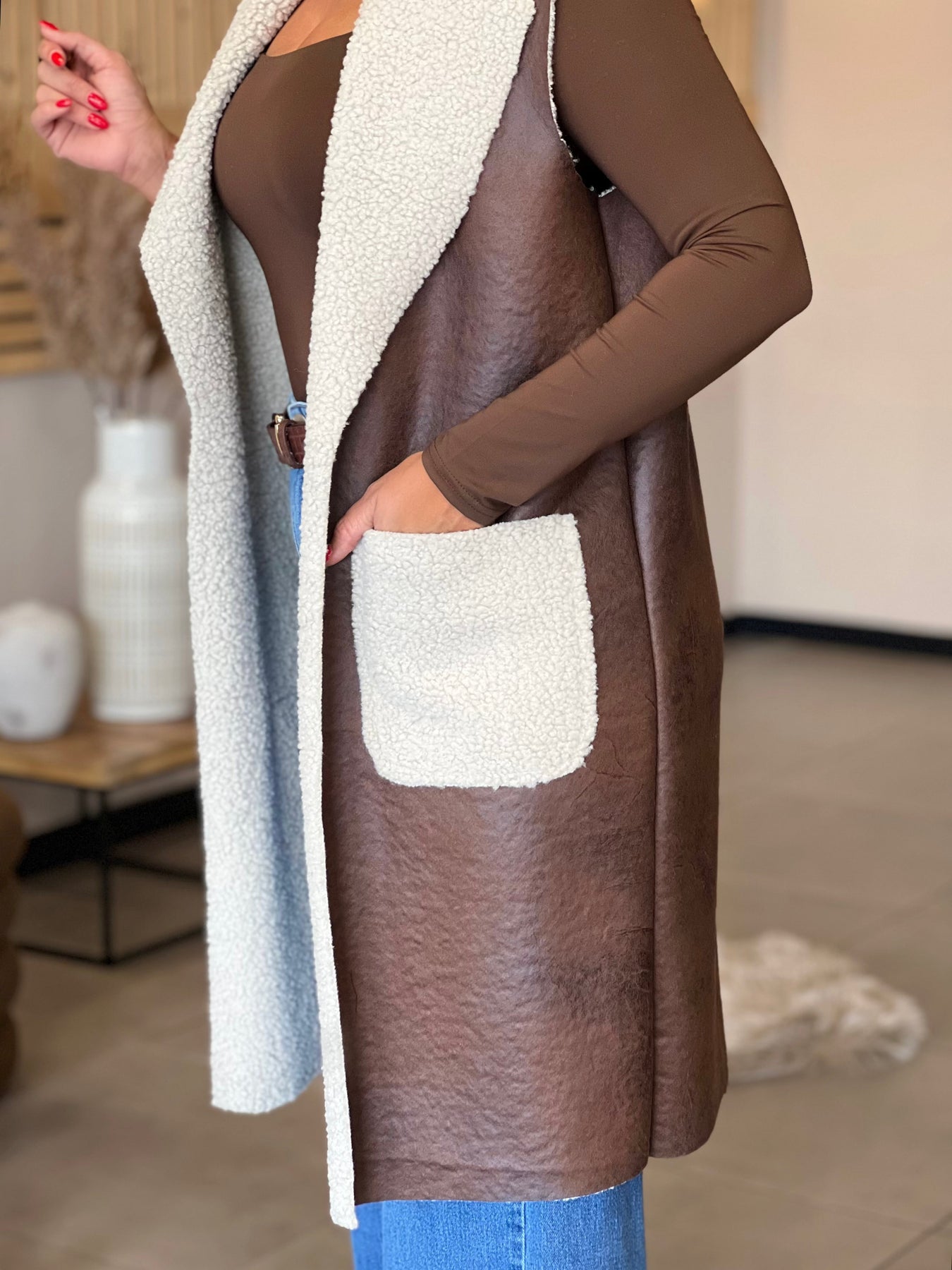 Fourrure sans manches WENDY - MARRON