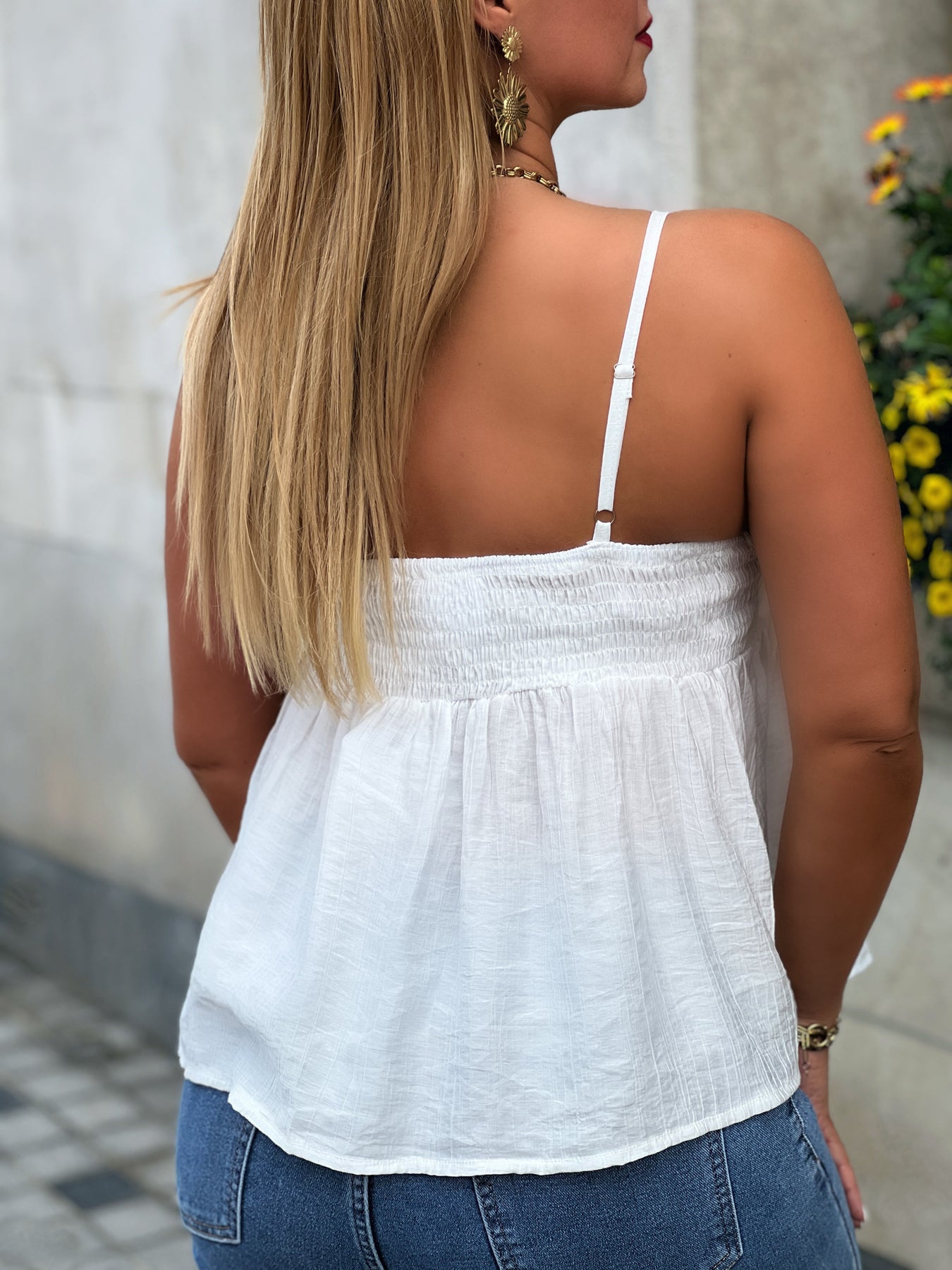 Caractéristiques : bretelles ajustables, élastique type smoke, décolleté en v